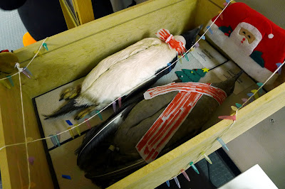 Stuffed Adelie penguin and south polar skua displayed in Cracy Research Lab. People over here try to have a touch of Christmas atmosphere around the building but how they are displayed is kinda creepy...